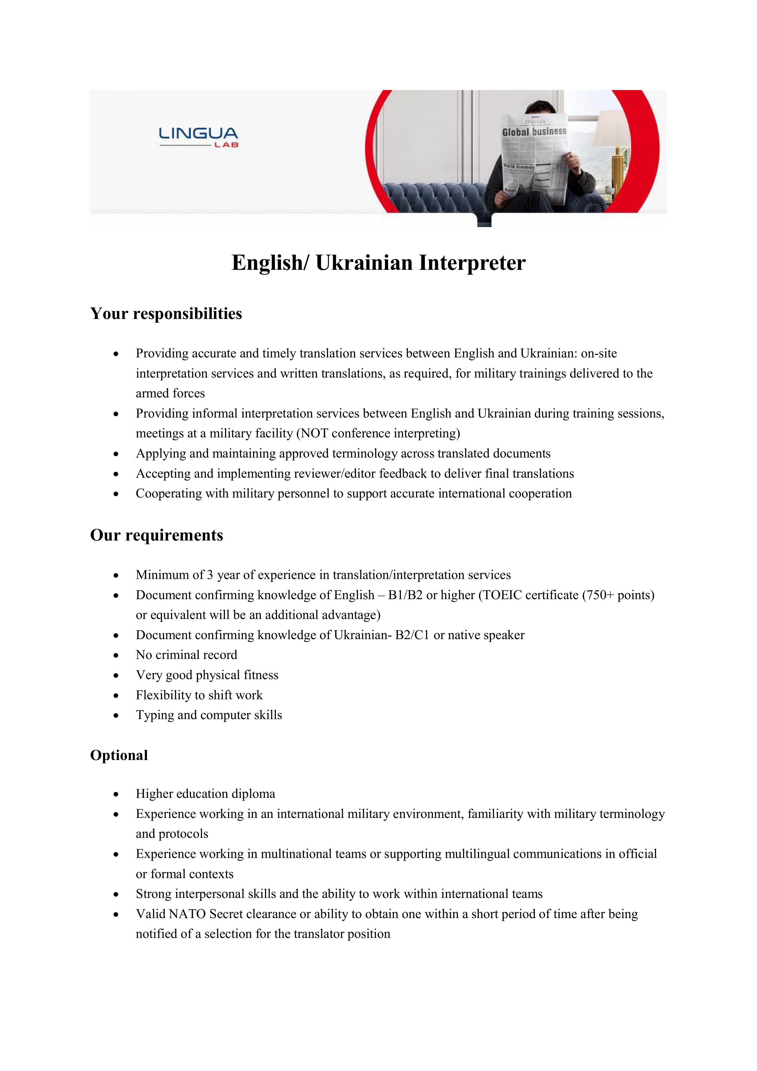 Oferta pracy tłumacza języka angielskiego/ukraińskiego