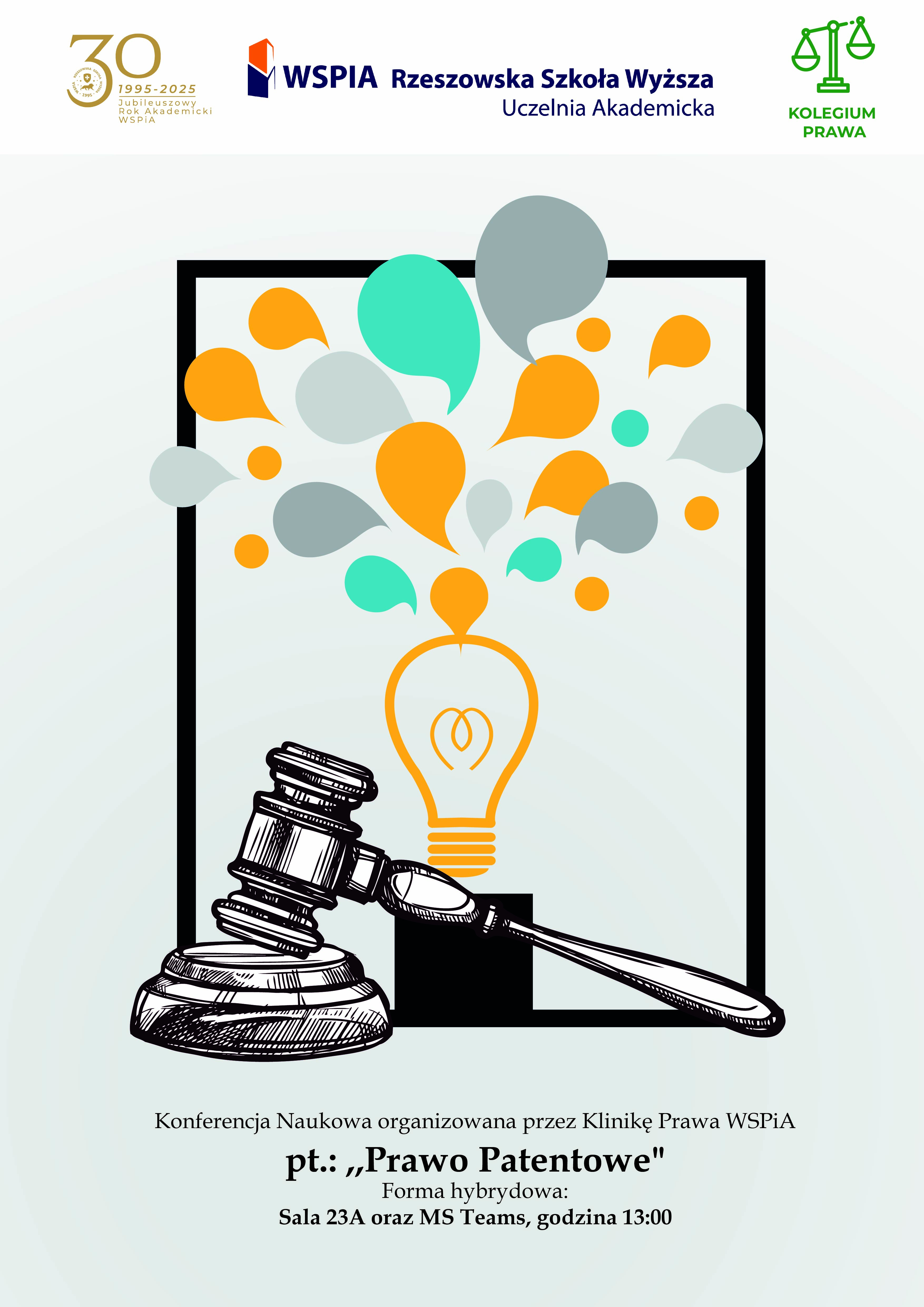 - Konferencja Naukowa pt.: ,,Prawo Patentowe" organizowana przez Klinikę Prawa WSPiA. Forma hybrydowa: Sala 23A oraz MS Teams, godzina 13:00. Link:
