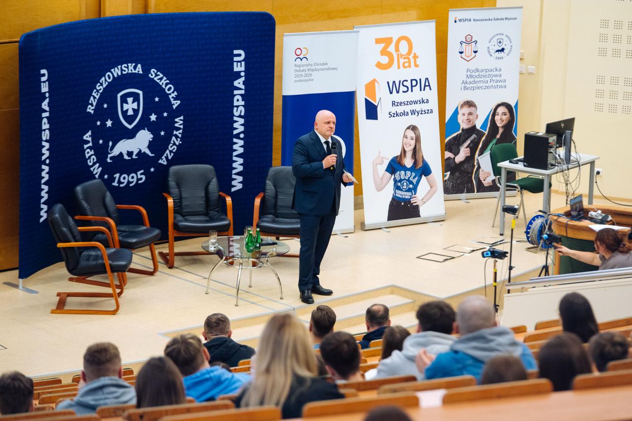 Jak rosyjska propaganda wpływa na opinię publiczną w Polsce i w Europie? W jaki sposób dezinformacja stała się jednym z najgroźniejszych narzędzi polityki Kremla? O tych kwestiach dyskutowali uczestnicy debaty pt. „Dezinformacja jako rosyjska broń”, która odbyła się 6 października 2025 r. w WSPiA Rzeszowskiej Szkole Wyższej. Wydarzenie zorganizowano we współpracy z Regionalnym Ośrodkiem Debaty Międzynarodowej w Rzeszowie (RODM Podkarpacie).