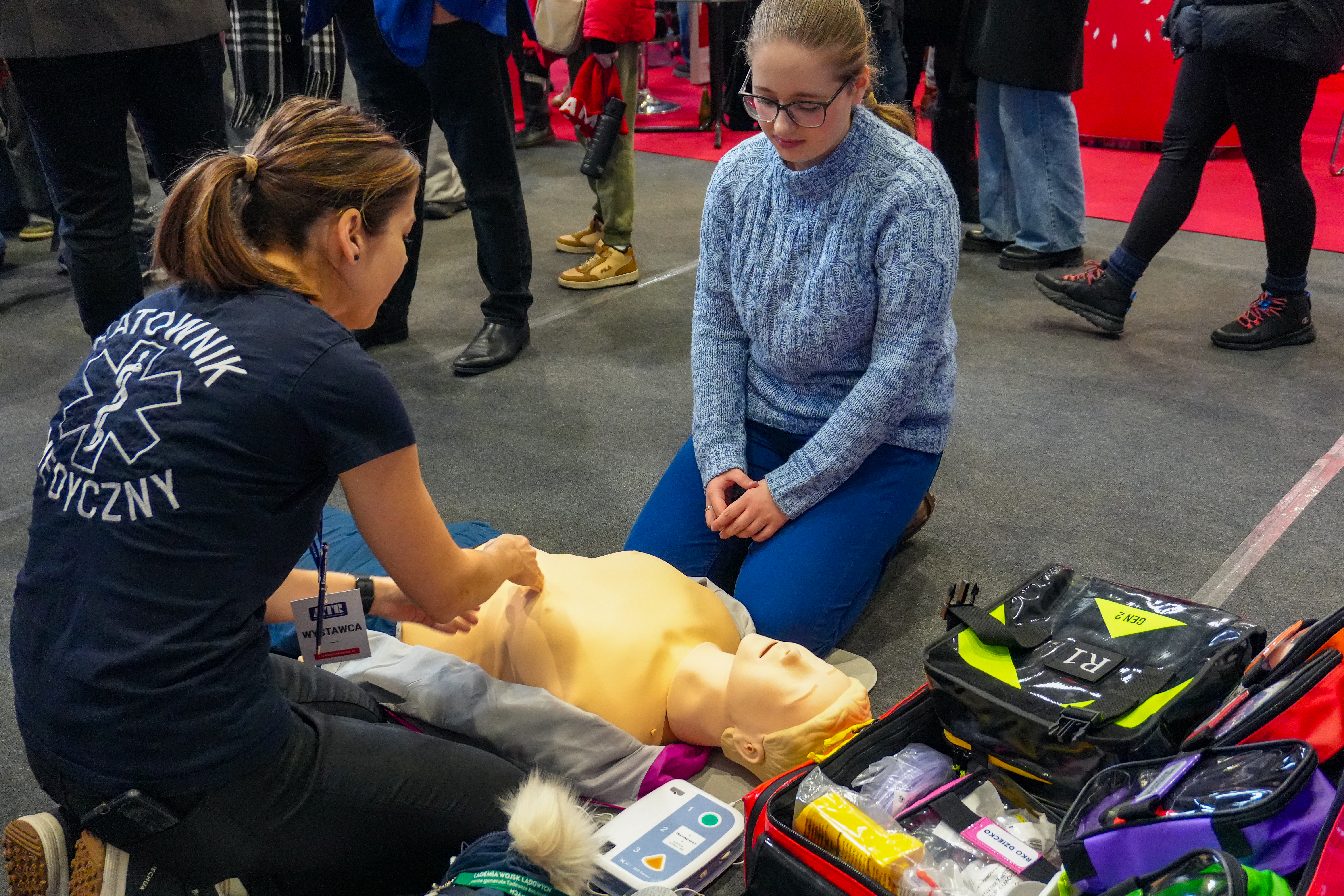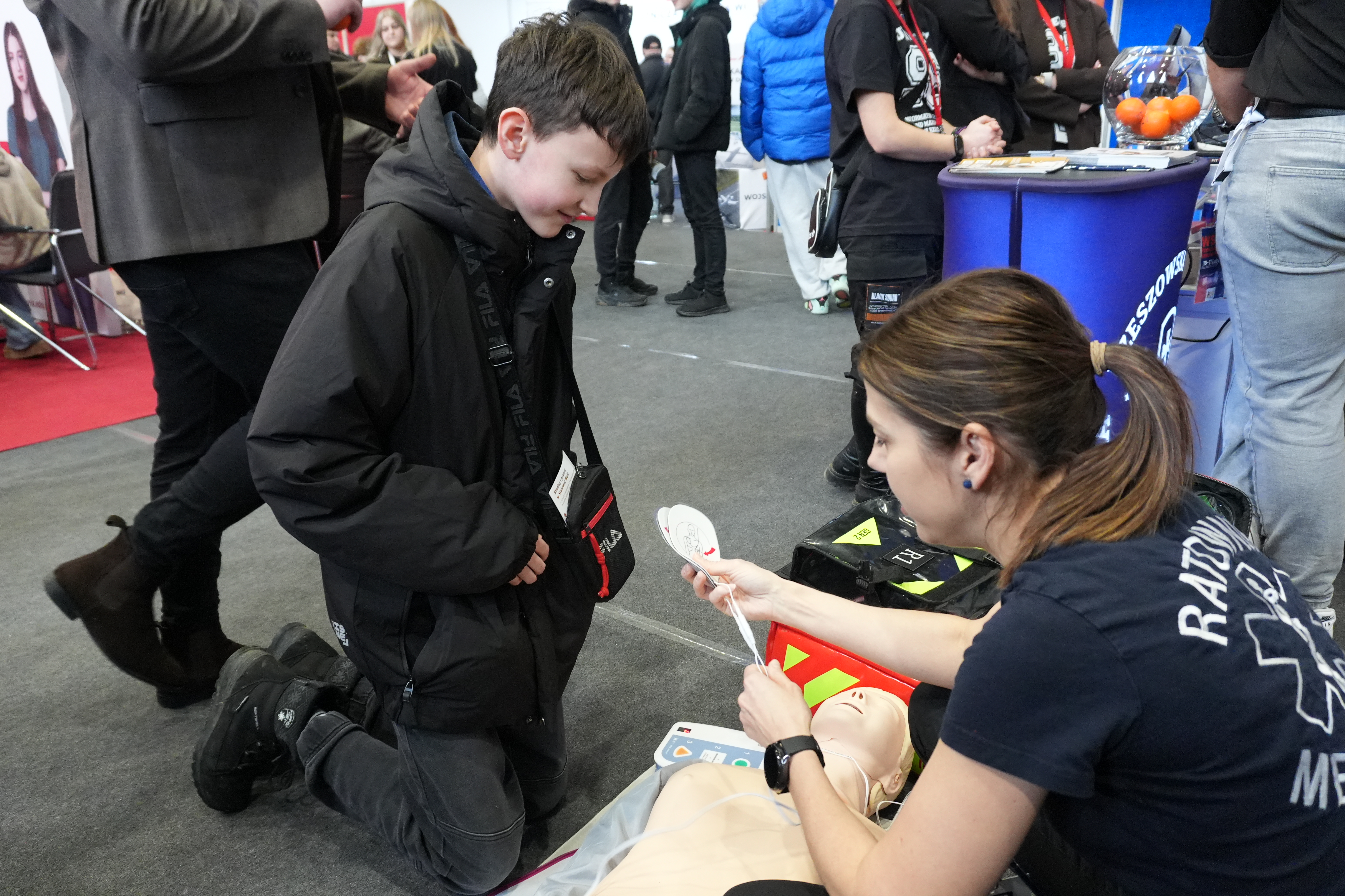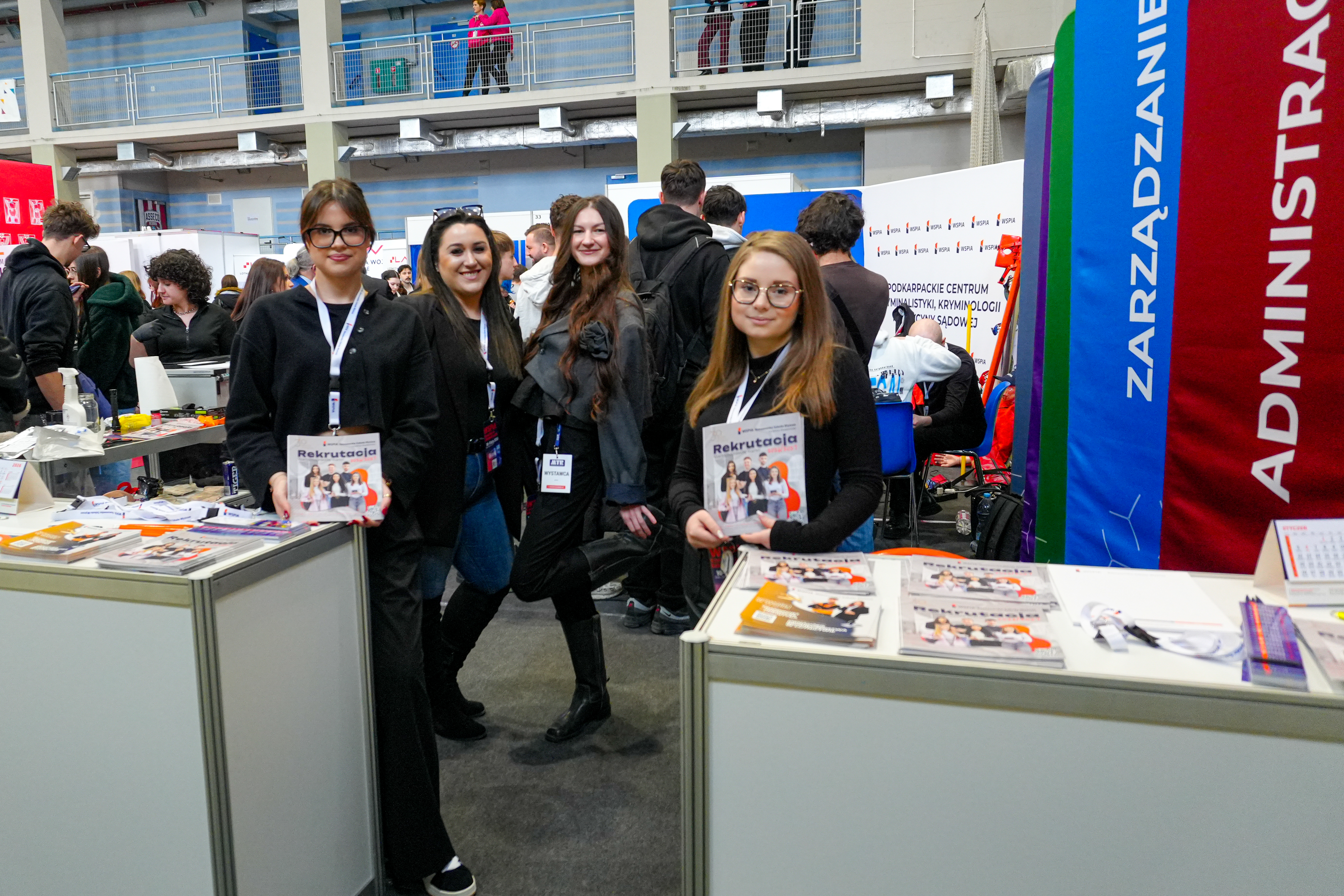 Stoisko WSPiA - podobnie jak pierwszego dnia - tętniło życiem. Uczniowie mogli zobaczyć na żywo działanie wariografu, wykonać odbitki swoich linii papilarnych oraz przyjrzeć się sprzętowi wykorzystywanemu w Pracowni Działań Ratowniczych. Te elementy nie były jedynie widowiskową atrakcją. Dla wielu młodych osób stanowiły dowód, że za kierunkami studiów w naszej Uczelni stoją realne kompetencje i konkretne umiejętności.