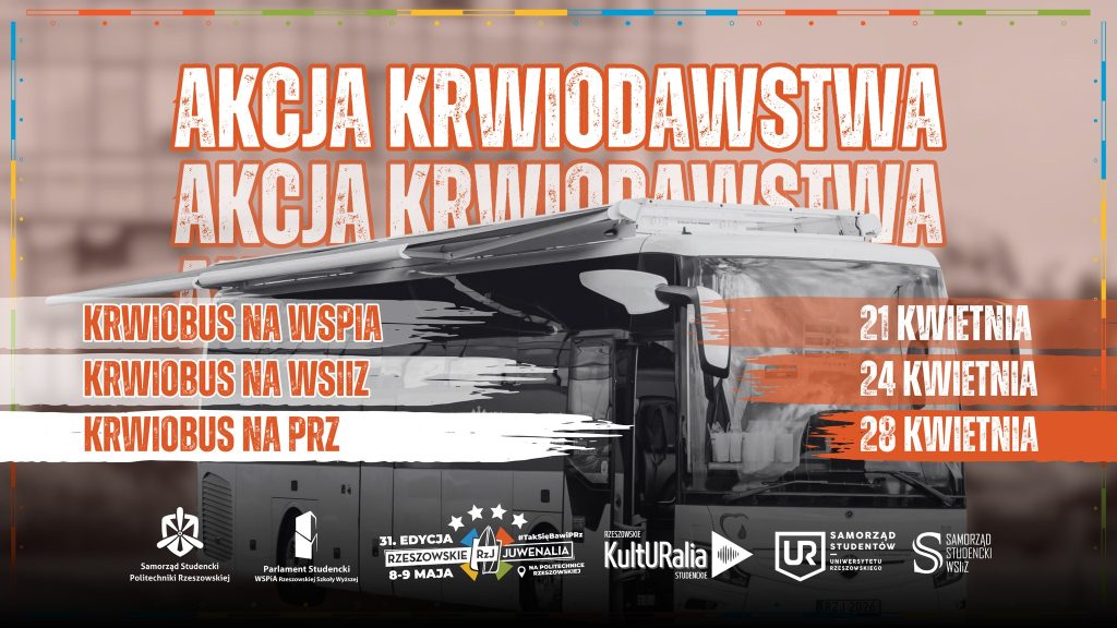 W najbliższym tygodniu WSPiA Rzeszowska Szkoła Wyższa zamieni się w centrum bezinteresownej pomocy – z prawdziwego zdarzenia! W ramach inicjatyw związanych z Rzeszowskimi Juwenaliami, już 21 kwietnia 2026 (wtorek) w godzinach 8:00-12:00 przy budynku A stanie krwiobus, w którym każdy, kto tylko chce, może podarować szansę na życie ofiarom wypadków, pacjentom onkologicznym czy osobom poddawanym skomplikowanym operacjom.