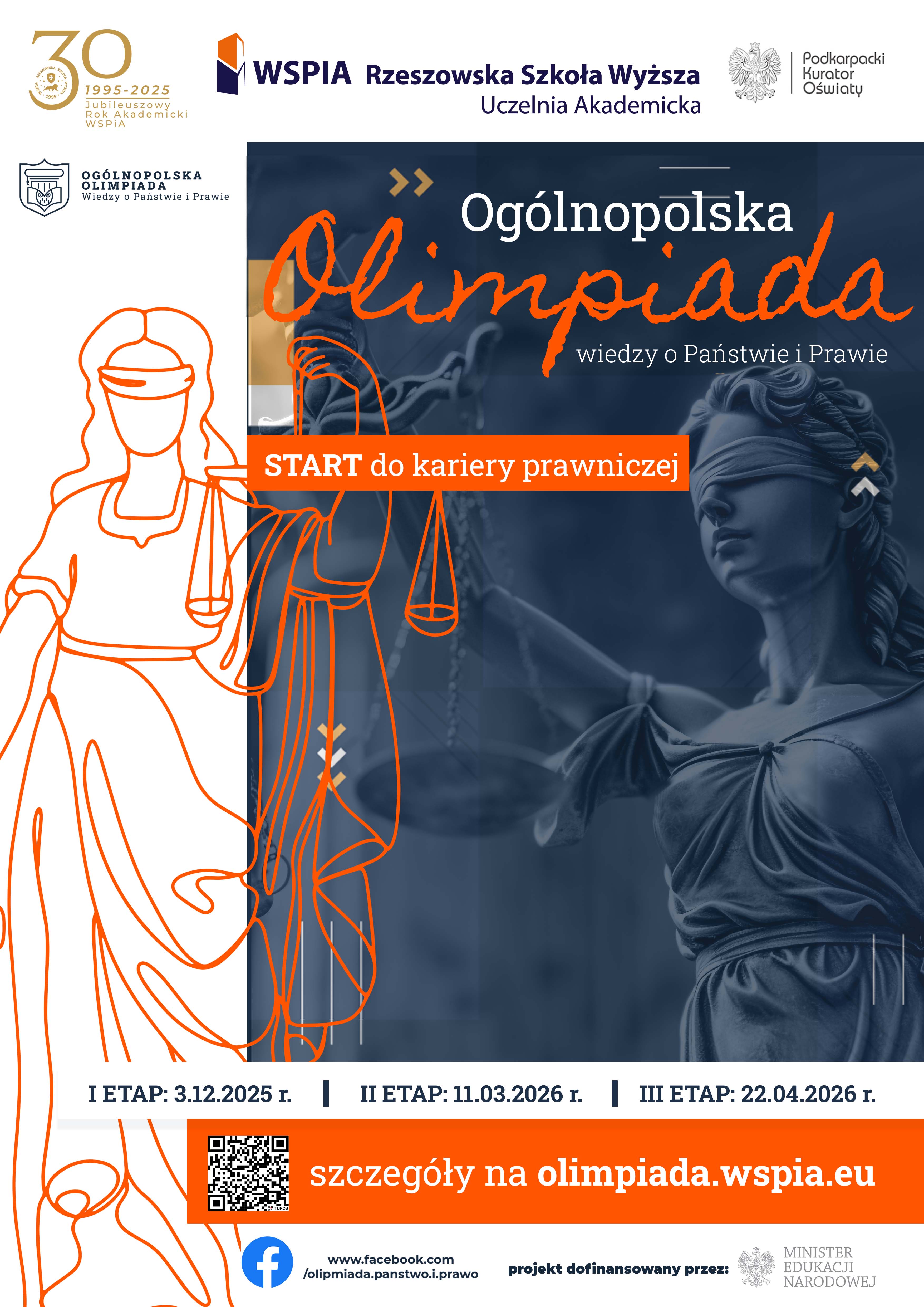 Po ponad pięcioletniej przerwie wraca Ogólnopolska Olimpiada Wiedzy o Państwie i Prawie. Organizatorem wydarzenia jest WSPiA Rzeszowska Szkoła Wyższa, która w otwartym konkursie została pozytywnie oceniona i uruchomiła ponownie to wyjątkowe przedsięwzięcie. Dzięki decyzji Ministerstwa Edukacji Narodowej Olimpiada będzie – jako jedyna w Polsce – ministerialną olimpiadą prawniczą, dedykowaną młodzieży szkół średnich.