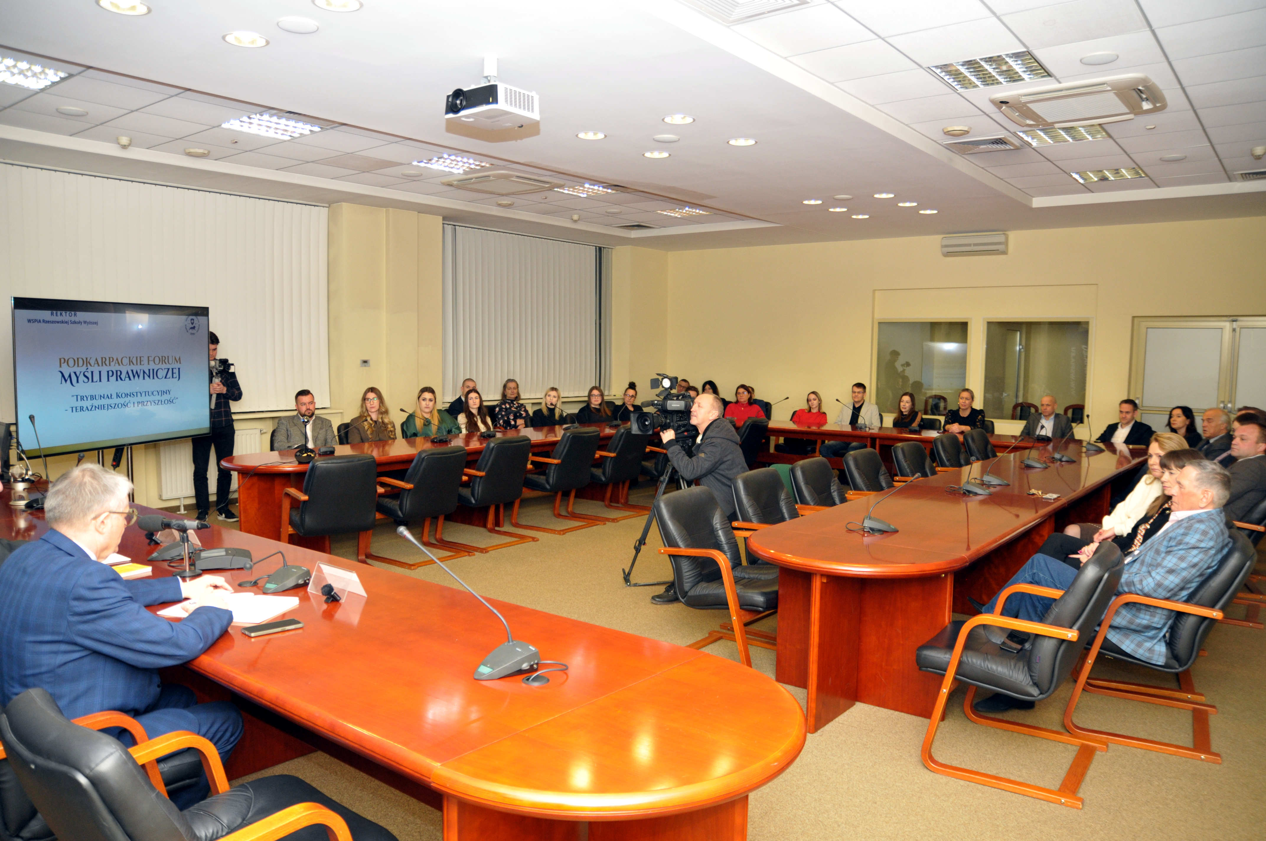15 grudnia 2025 roku w WSPiA Rzeszowskiej Szkole Wyższej odbyło się kolejne spotkanie z cyklu Podkarpackiego Forum Myśli Prawniczej, tym razem poświęcone jednemu z kluczowych zagadnień współczesnego konstytucjonalizmu - kondycji i przyszłości Trybunału Konstytucyjnego w Polsce.