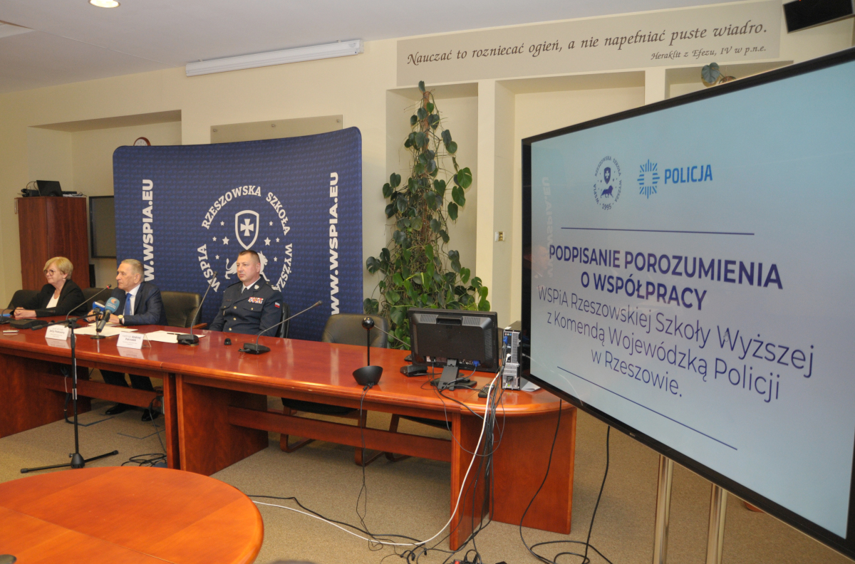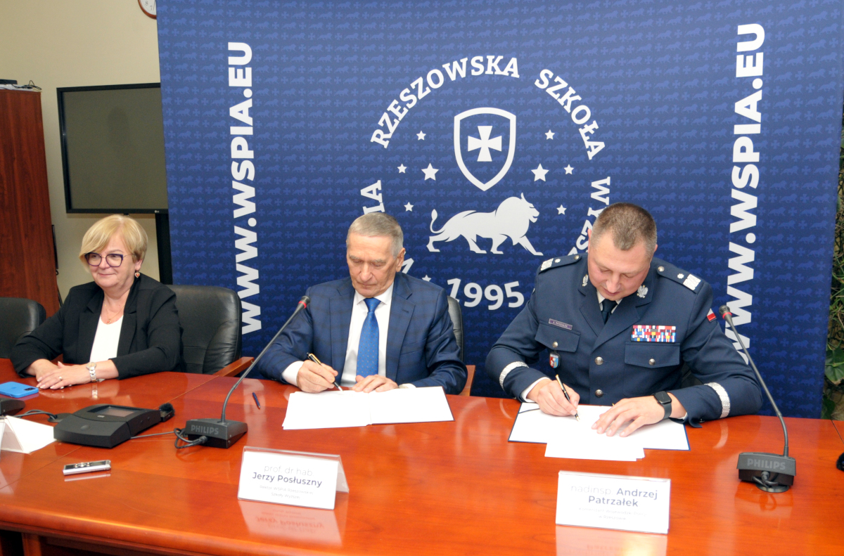 Porozumienie pod patronatem Wojewody Podkarpackiego Teresy Kubas-Hul podpisali prof. Jerzy Posłuszny, Rektor WSPiA Rzeszowskiej Szkoły Wyższej oraz nadinspektor Andrzej Patrzałek, Komendant Wojewódzki Policji w Rzeszowie. Jest to kolejny taki dokument podpisany w ostatnim czasie. Uczelnia wcześniej zawarła porozumienia m.in. z Wojewodą Podkarpackim Teresą Kubas-Hul, Strażą Graniczną, Izbą Administracji Skarbowej w Rzeszowie, Okręgowym Inspektoratem Służby Więziennej, Podkarpackim Kuratorium Oświaty, Okręgową Izbą Radców Prawnych oraz kilkudziesięcioma szkołami średnimi.